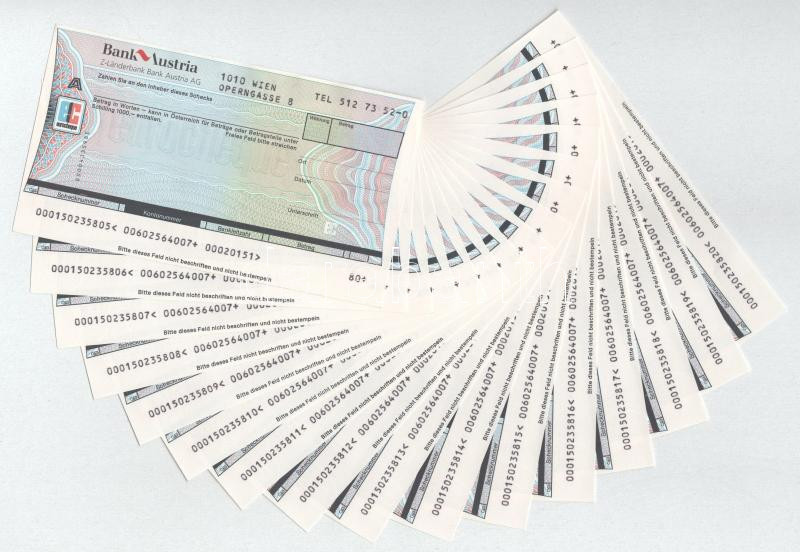 Austria cca 1990. 16pcs unfilled "Bank Austria" bank cheque with consecutive serials C:UNC,AU