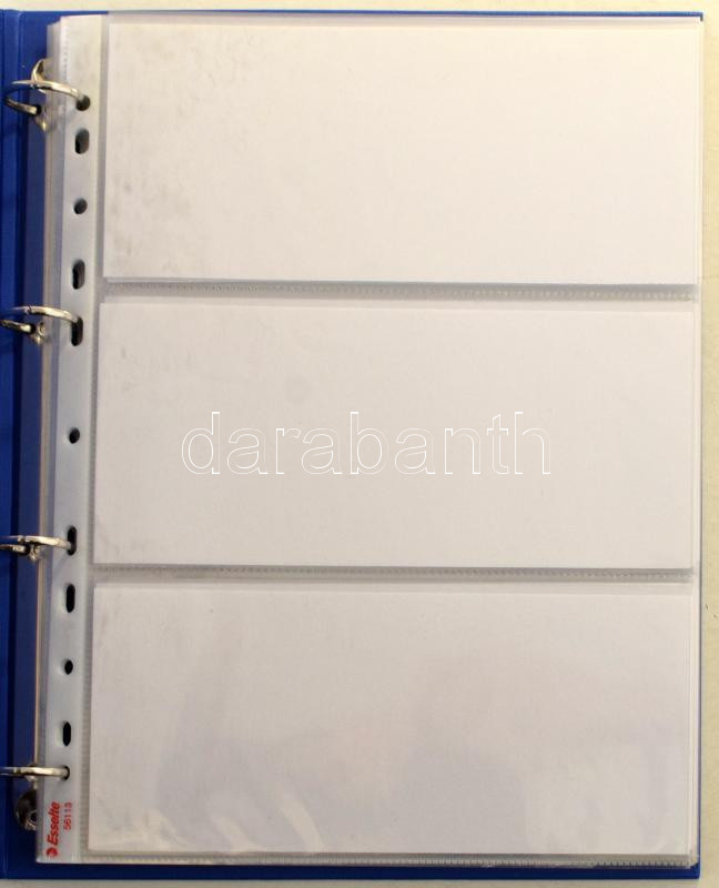 Használt, de jó állapotú négygyűrűs bankjegyberakó album, összesen 30db hármas elosztású berakólappal