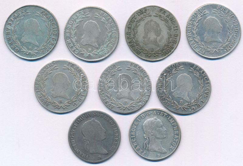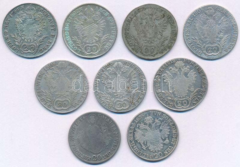 1796-1835. Kilenc darabos magyar és osztrák krajcár tétel, mindegyik 20kr névérték és különféle évjárat vagy verdejel, benne: 1796B, 1802B, 1805B, 1805E, 1808B, 1809B, 1818B, 1834B, 1835B T:XF,VF