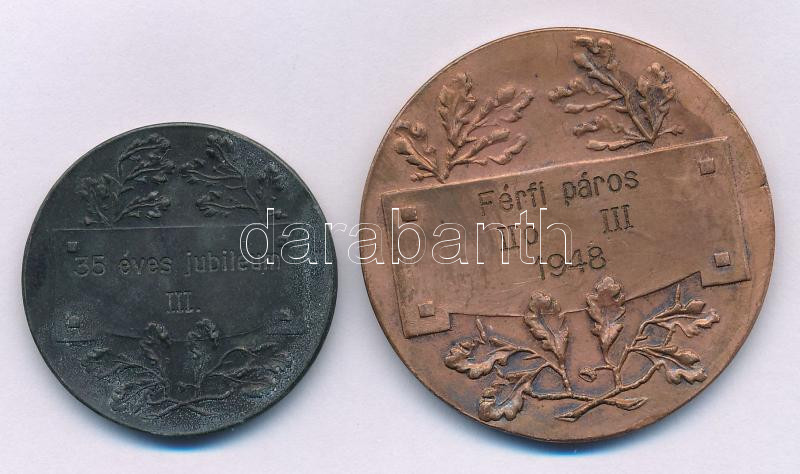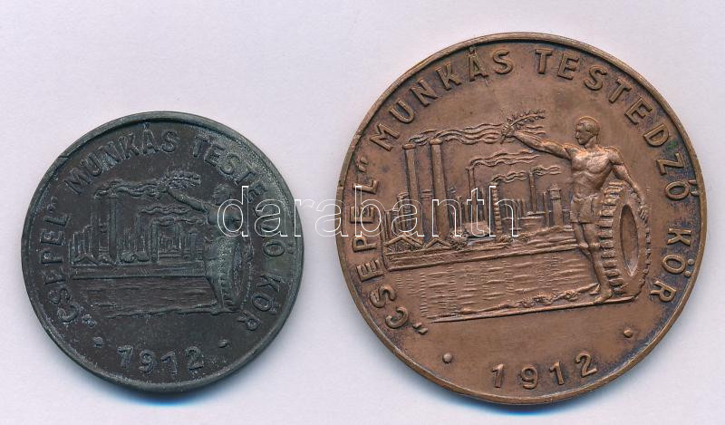 1947-1948. "Csepel Munkás Testedző Kör" kétoldalas bronz díjérem gravírozással (2xklf: 39mm és 30mm) T:XF patina