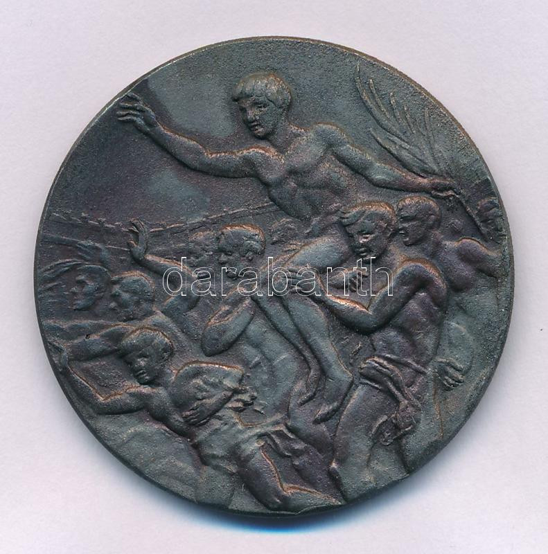 1948. "XIV. nyári Olimpiai Játékok London" bronzozott Zn emlékérem a magyar résztvevők névsorával (40mm) T:XF kopott bronzozás