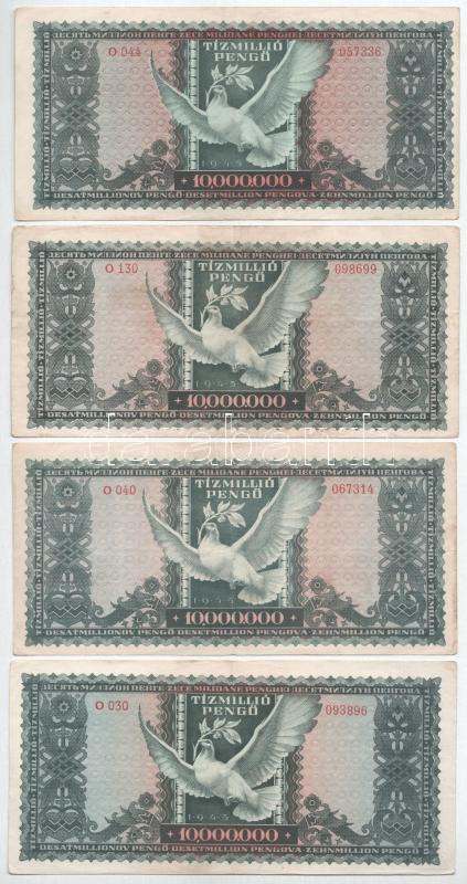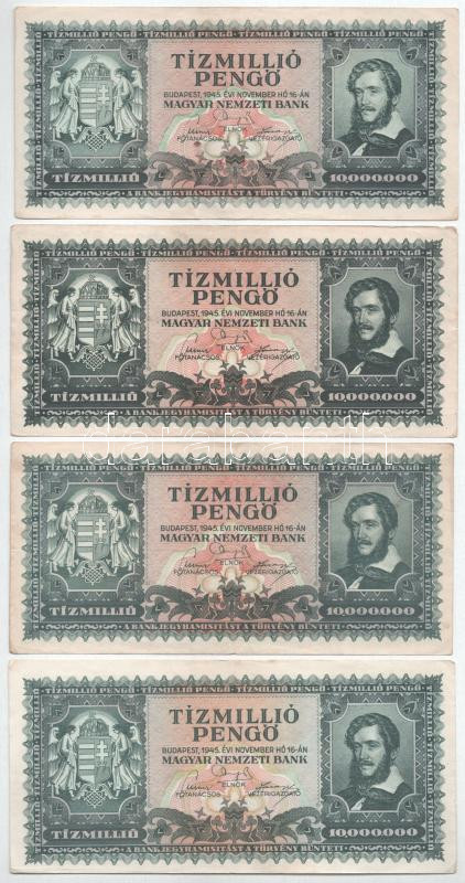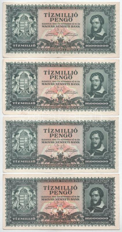1945. 10.000.000P (8x) közte egy pár közeli sorszám "O 264 088055 - O 264 088058" T:VF-F szép papír
