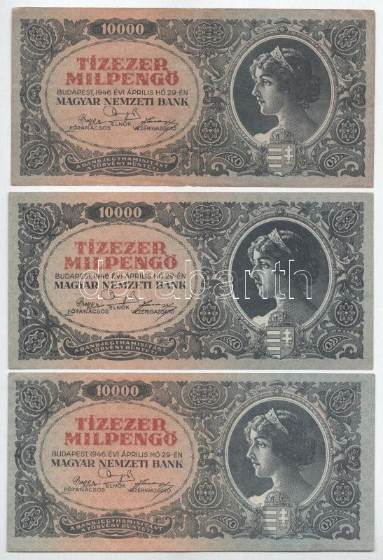 1946. 10.000MP (7x) mind különböző sorozatszámú "A 016-A 166" T:F szép papír