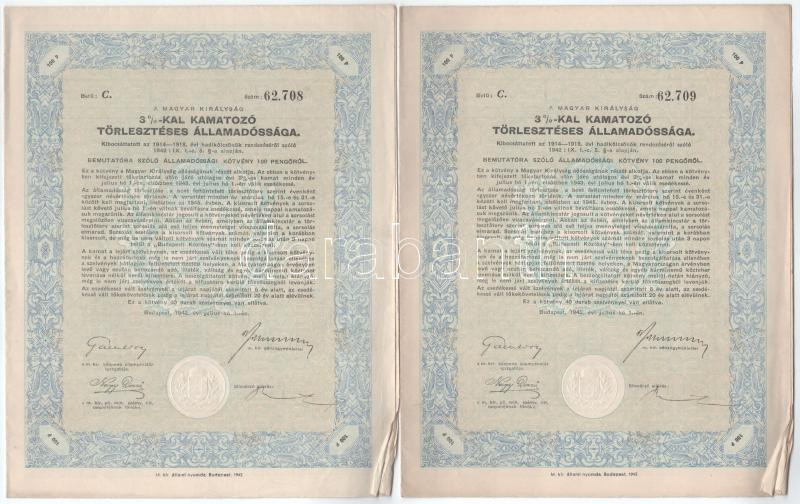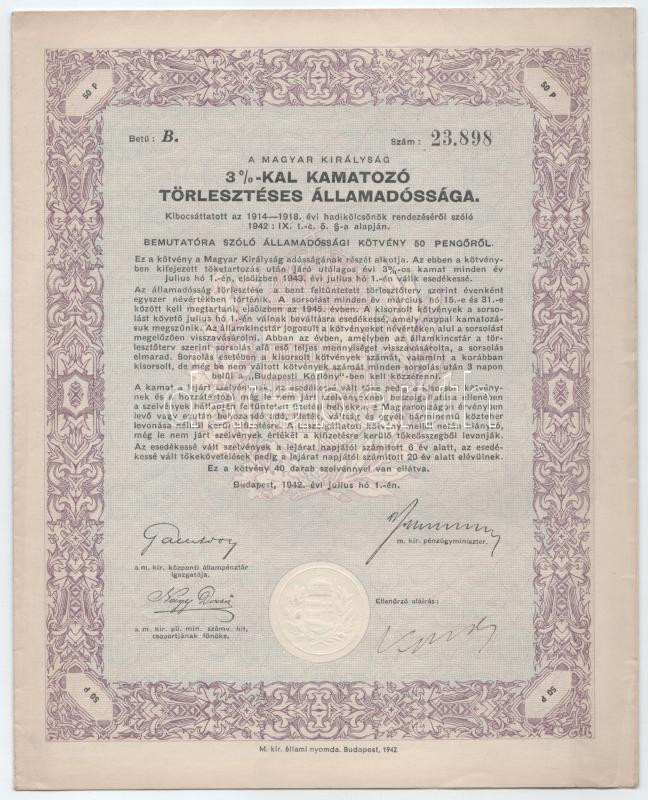 Beschreibung: Vegyes, 13db-os tétel, benne 10db 1930-1946 közötti Pengő bankjeggyel és 3db 1942-es államadóssági kötvénnyel (2db 100P és 1db 50P) T:F