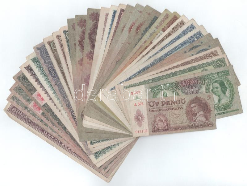 Vegyes, 31db-os magyar Pengő bankjegytétel T:F,VG https://www.darabanth.com/de/515-Auktion-Philatelie-Postkarten-Numismatik-Kunstwerke-Bucher-Schreibwaren-Schmuck/518.0/Numismatik/Ungarische-Banknoten~665/Vegyes-31db-os-magyar-Pengo-bankjegytetel-T-F-VG~II3491139