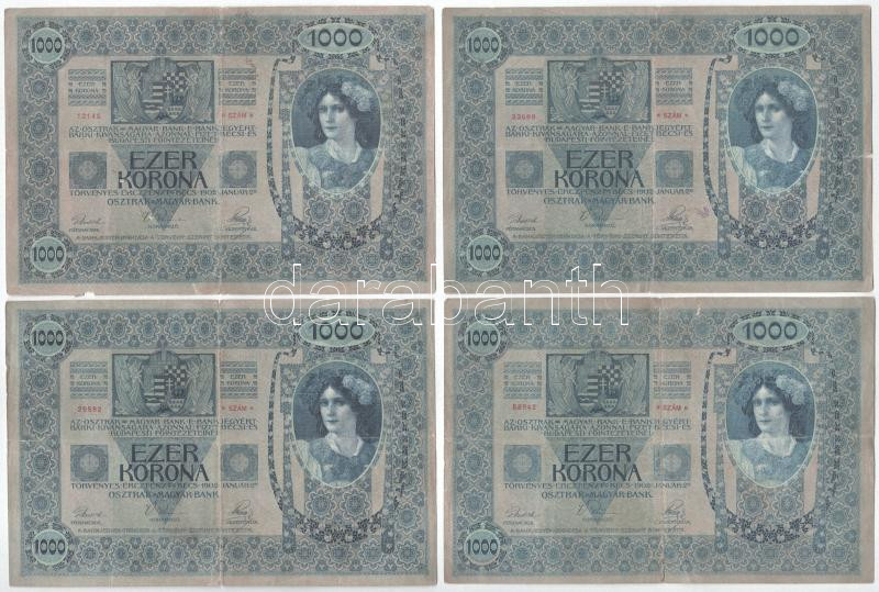 Vegyes 9db-os Korona bankjegytétel 1902-1920. 2K-100K T:F szép papír-V...