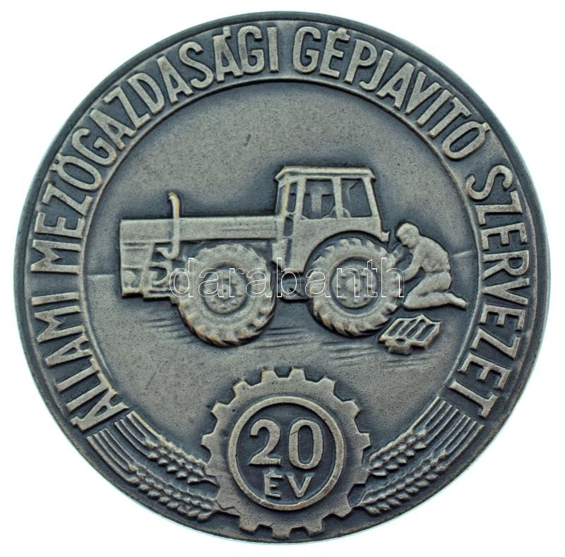 1970 k. "Állami Mezőgazdasági Gépjavító Szervezet - 20 év" egyoldalas ezüstpatinázott bronz emlékérem, hátoldalán "1948-1968" gravírozással (70mm) T:AU