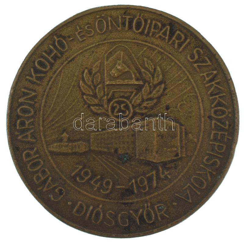 1974. "Gábor Áron Kohó- és Öntőipari Szakközépiskola - Diósgyőr - 25 - 1949-1974" egyoldalas, öntött bronz emlékplakett (70mm) T:XF