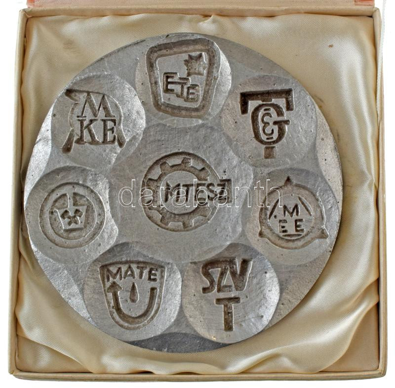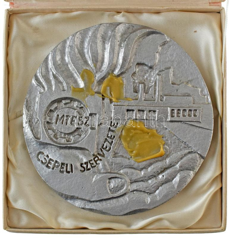 DN Műszaki és Természettudományi Egyesületek Szövetsége "MTESZ Csepeli Szervezete" kétoldalas Al emlékérem eredeti tokban (130mm) T:XF, nagy ragasztónyom van rajta