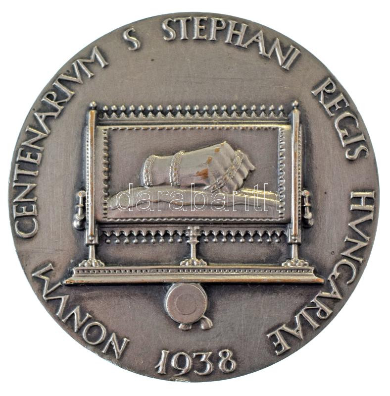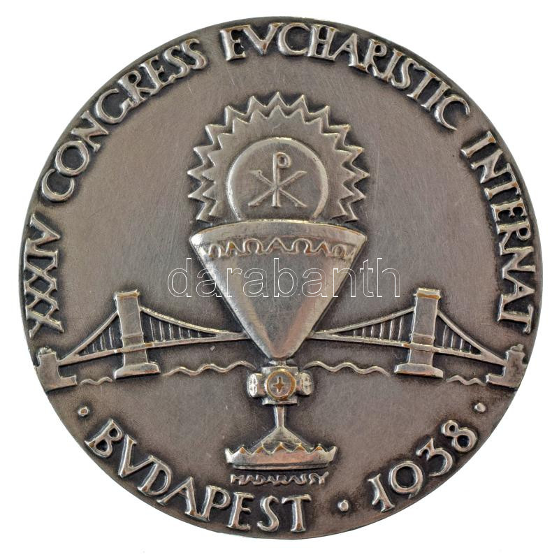 Madarassy Walter (1909-1994) 1938. "34. Eucharisztikus Világkongresszus Budapest 1938 - 1948 / Szent Jobb" ezüstözött bronz emlékérem. "NONVM CENTENARIVM S STEPHANI REGIS HVNGARIAE - 1938 / XXXIV CONGRESS EVCHARISTIC INTERNAT - BVDAPEST 1938" (56mm) T:AU picit kopott ezüstözés