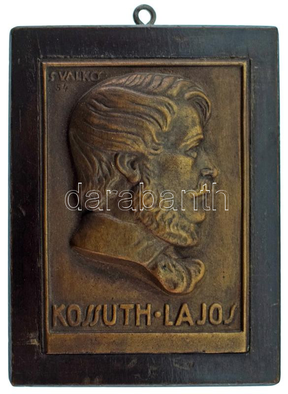 Solymári Valkó László (1909-1984) 1954. "Kossuth Lajos" egyoldalas, önött bronz plakett fa talpon (90x64mm) T:AU,XF