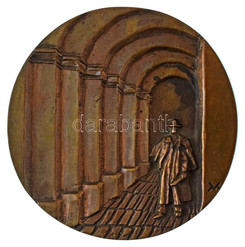 Váró Márton (1943-) DN Álló férfi alak az árkádok alatt (Ady Endre ábrázolás) egyoldalas, öntött bronz emlékérem (107mm) T:AU