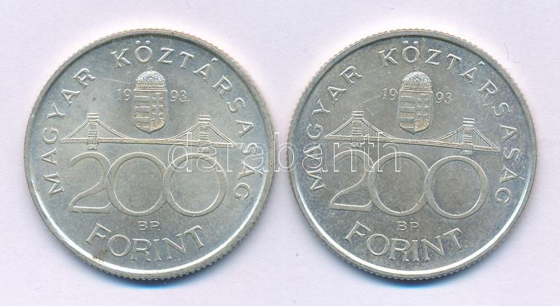 1993. 200Ft Ag "MNB" (2x) T:AU,XF patina