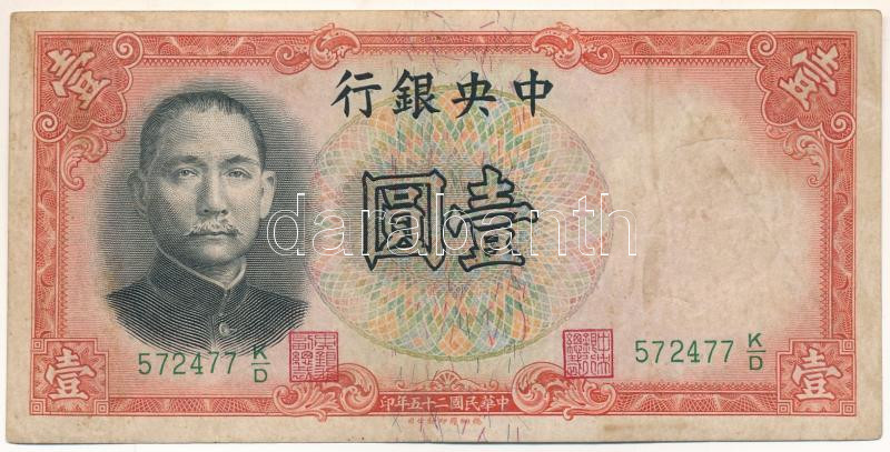 China 1936. 1 Yuan "Central Bank of China" C:F