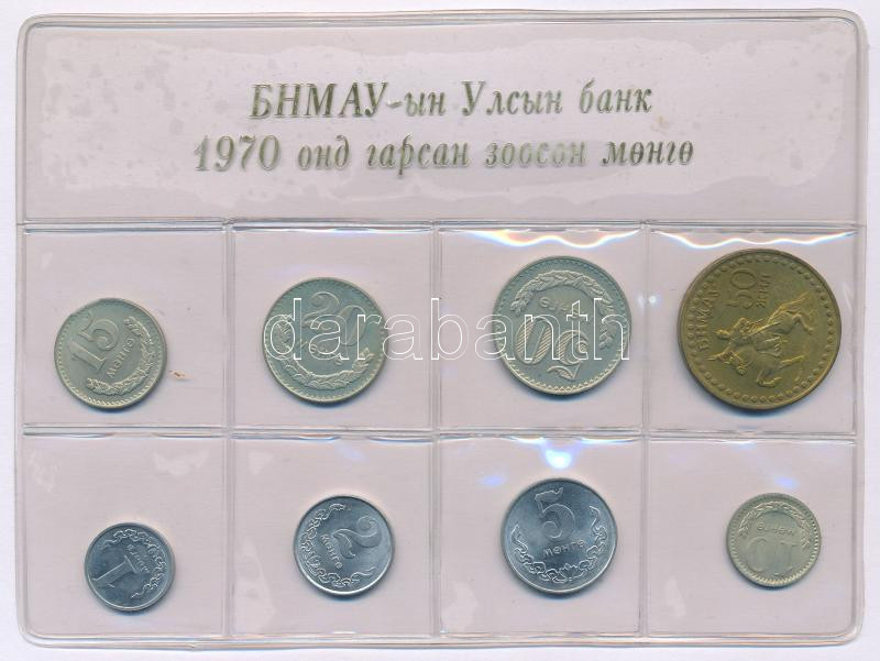 Mongolia 1970. 1 Mongo - 50 Mongo (8xdiff) coin set in sealed plastic case C:UNC edge error on one