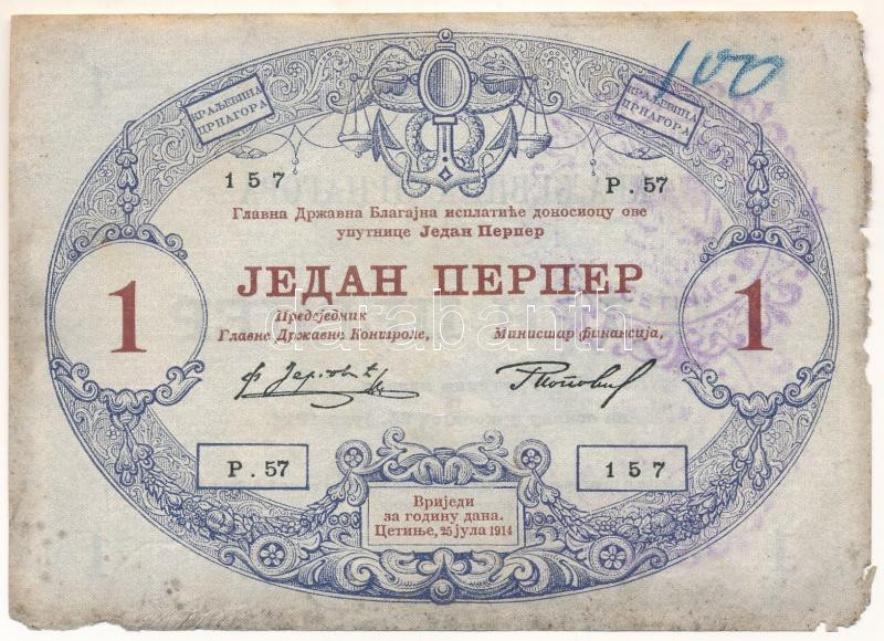 Montenegro / Austro-Hungarian occupation 1914. 1 Perpera overprinted C:VG