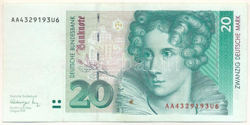 Németország 1991. 20M "AA 4329193U6" T:XF fo.