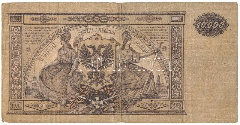 Orosz Polgárháború / Dél-Oroszország / Wrangel Hadserege 1919. 10.000R T:F,VG elején kézírás