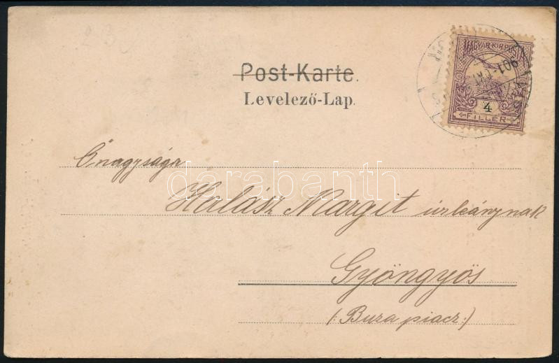 1901 Képeslap Turul 4f bérmentesítéssel Gyöngyösre