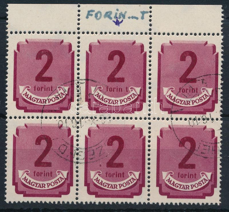 1946 Forint-filléres portó 2Ft ívszéli 6-os tömb "forin t" lemezhibával