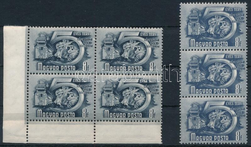 1950-1951 Ötéves terv 8f ívsarki négyestömb + hármascsík eltérő színben