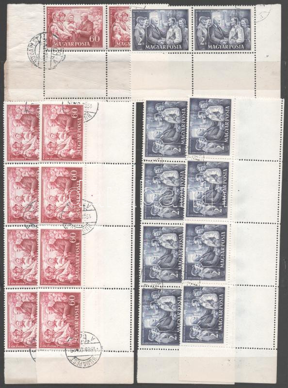 1952 Rákosi Mátyás 60f + 2Ft 10-10 db bélyeg összefüggésekben, alsó üres mezőkkel