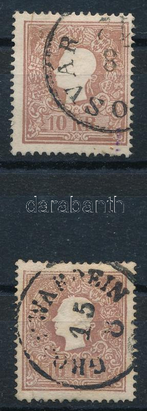 1858 10kr I. és II. típusú bélyeg, "KAPOSVÁR" + "GROSSWARDEIN"