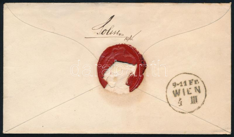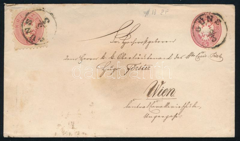 ~1864 5kr díjjegyes boríték 5kr díjkiegészítéssel "GÜNS" - "WIEN"