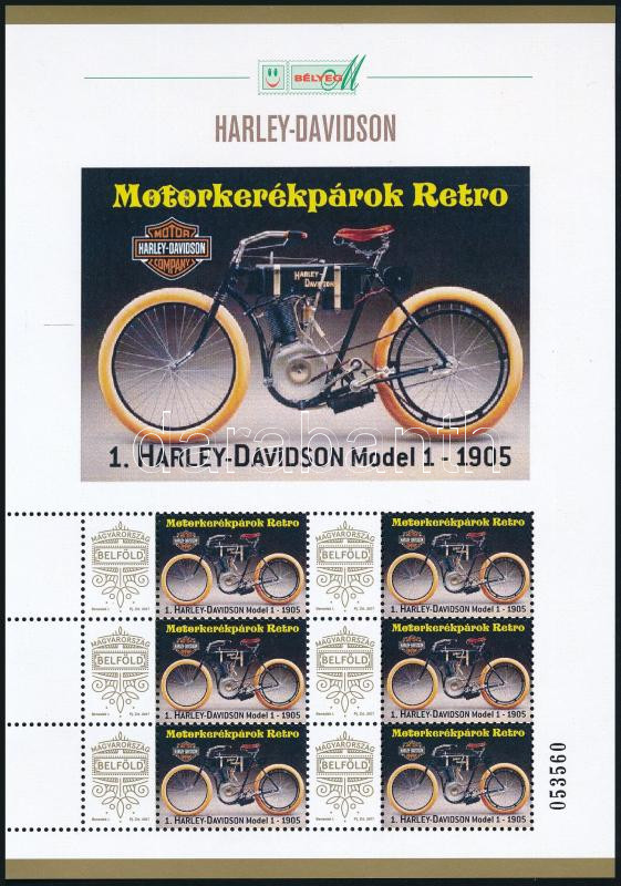 2025 Motorkerékpárok retro - Harley Davidson 6 db bélyeget tartalmazó megszemélyesített kisív