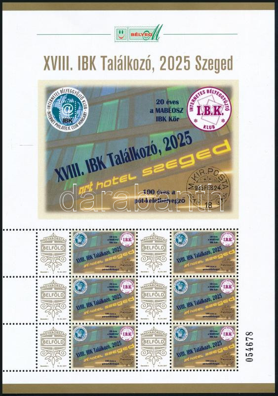 2025 XVIII. IBK Találkozó Szeged 6 db bélyeget tartalmazó megszemélyesített kisív