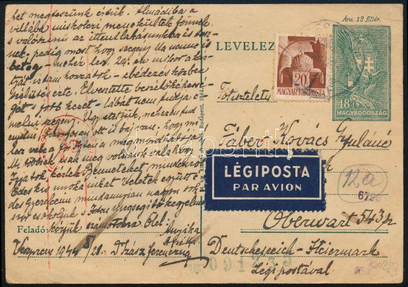 1944 Légi cenzúrás levelezőlap Németországba / Airmail censored postcard to Germany