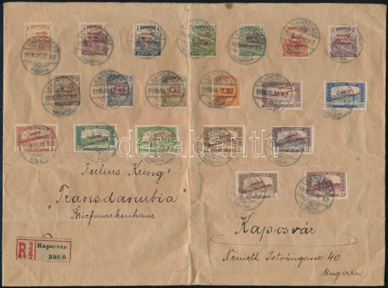 1919 Magyar Tanácsköztársaság sor ajánlott Kaposvár helyi nagyalakú levélen / Registered local cover
