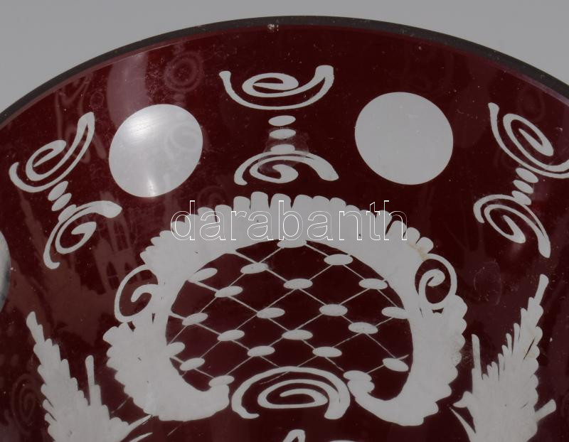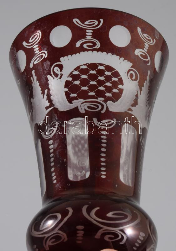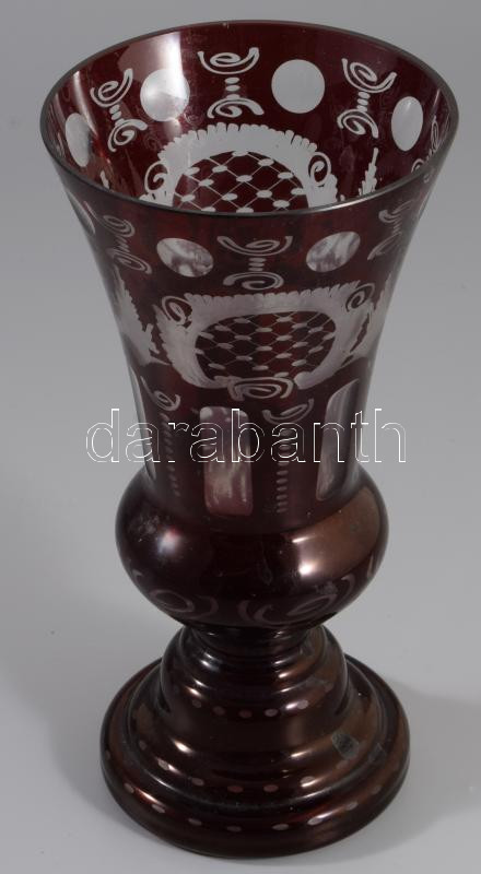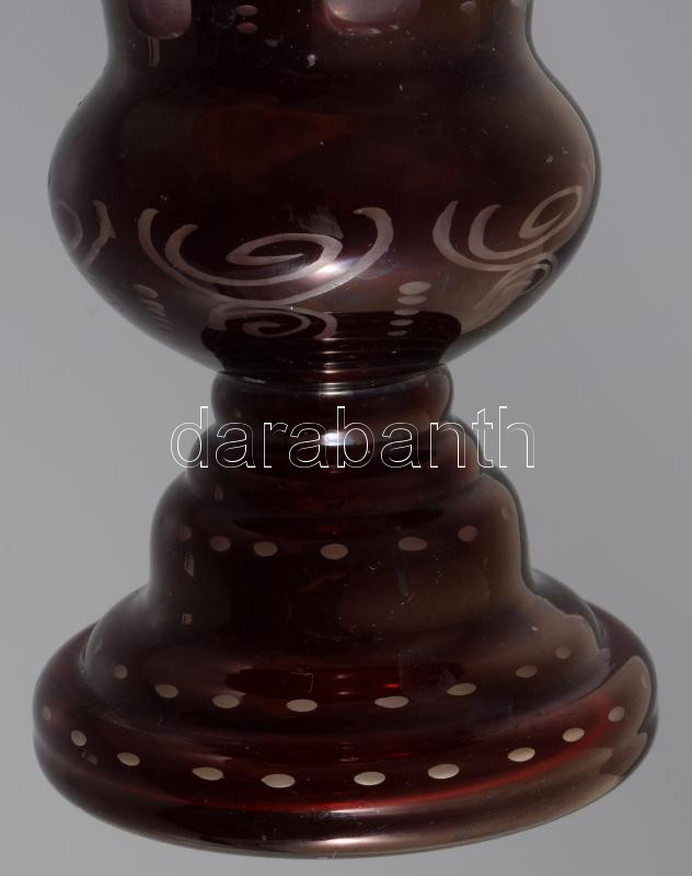 Antik bíborpácolt váza csiszolt mintával, m: 21 cm