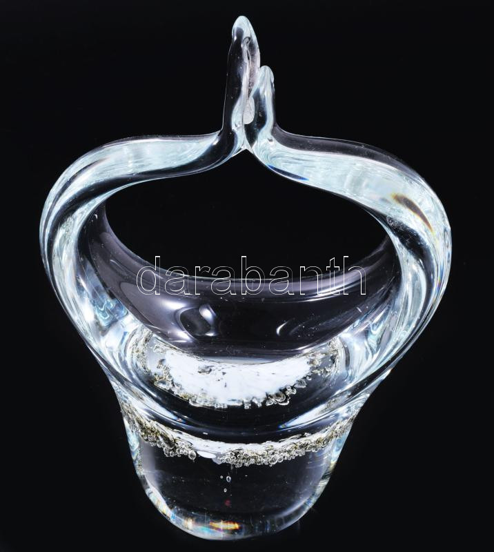 Cseh asztaldísz, belső olvasztott anyag díszítéssel, m: 14 cm