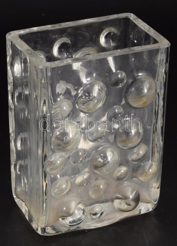 Hólyagos üveg váza., formába préselt, hibátlan 13 cm