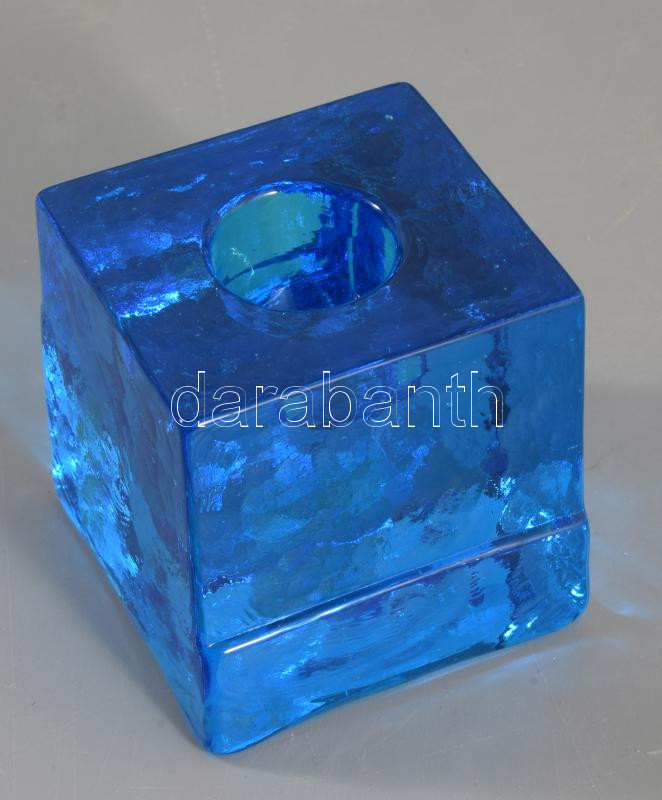 Lindshammar svéd design üveg gyertyatartó, címkével jelzett, hibátlan, 5x5 cm