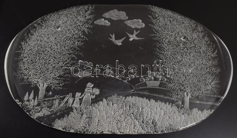 Vidéki tájat ábrázoló préselt süteménykínáló, hibátlan, 27x42 cm
