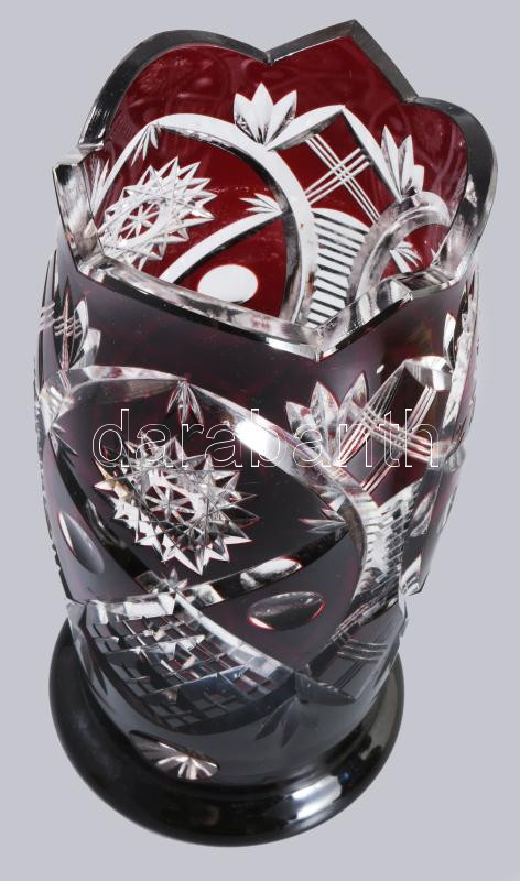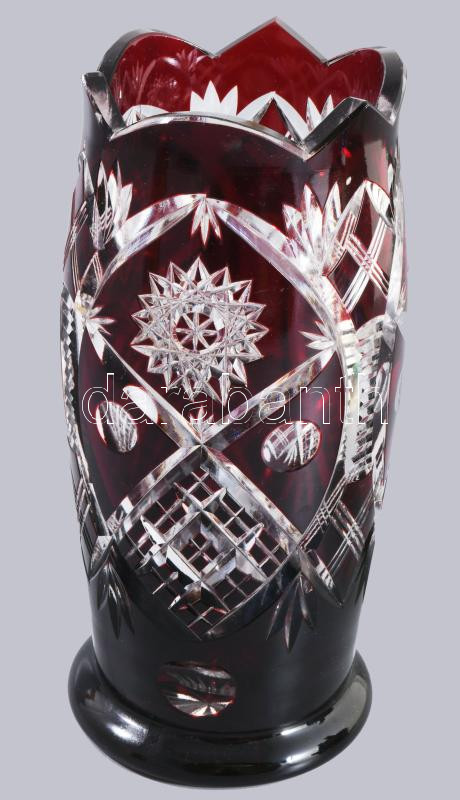 Vörösen pácolt kristály váza, hibátlan, m: 21,5 cm