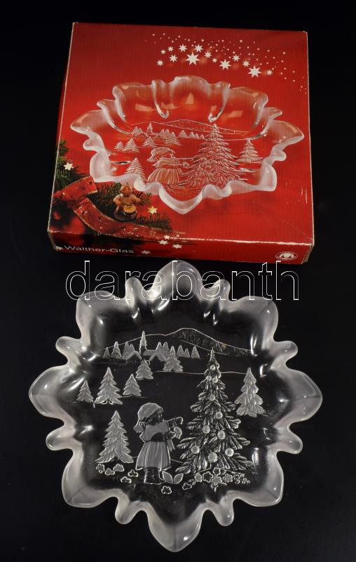 Walther-Glas karácsonyi mintás dísztál, dobozában, hibátlan, d: 25 cm