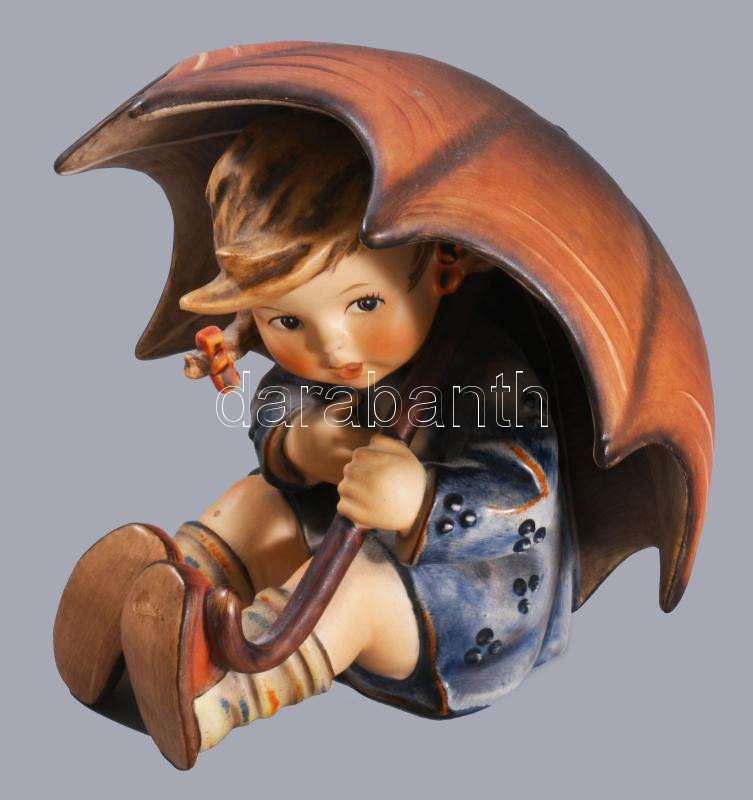 Hummel kislány napernyővel, jelzett, hibátlan, m: 12 cm