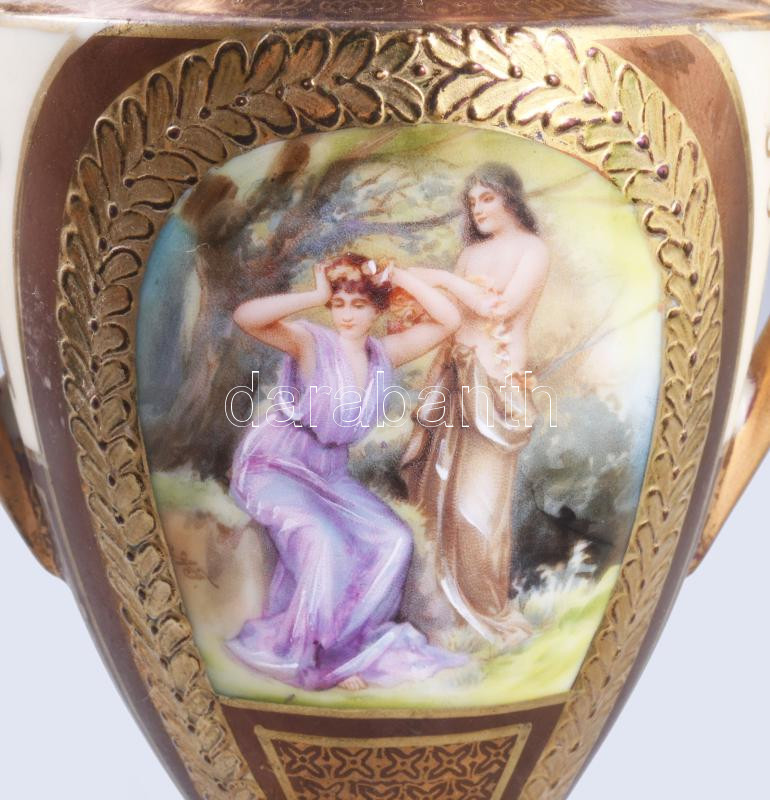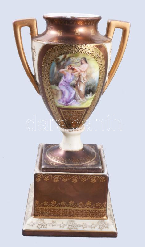 Imperial osztrák porcelán urnaváza. matricás, jelzett, kopással, csavar kilazult. 22 cm