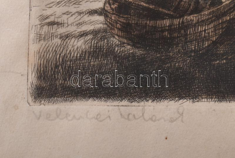 Beschreibung: Görög Rezső (1930-): Velencei halászok. Színes rézkarc, papír, jelzett. Lap széle kissé sérült és kissé foltos. 29x37 cm