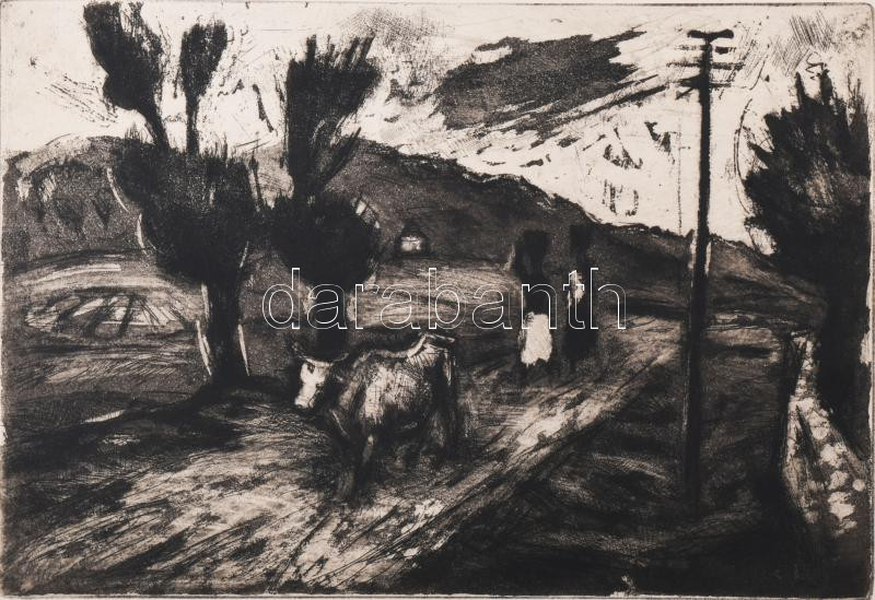 Iván Szilárd (1912-1988): Úton (cím nélkül). Rézkarc, aquatinta, papír... https://www.darabanth.com/de/515-Gemalde-Plakat-ex-libris-Auktion/517.0/Gemalde-und-Grafiken/Gemalde-und-Grafiken~16/Ivan-Szilard-1912-1988-Uton-cim-nelkul-Rezkarc-aquatinta-papir-jelzett-kartonra~II3485797