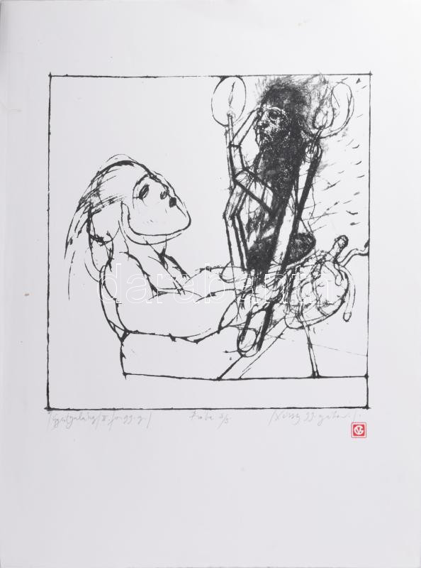 Beschreibung: Véssey Gábor (1948-): Gyertyaláng II, 1999. Litográfia, papír, jelzett, próbanyomat 3/3 számozással, 30×30,5 cm