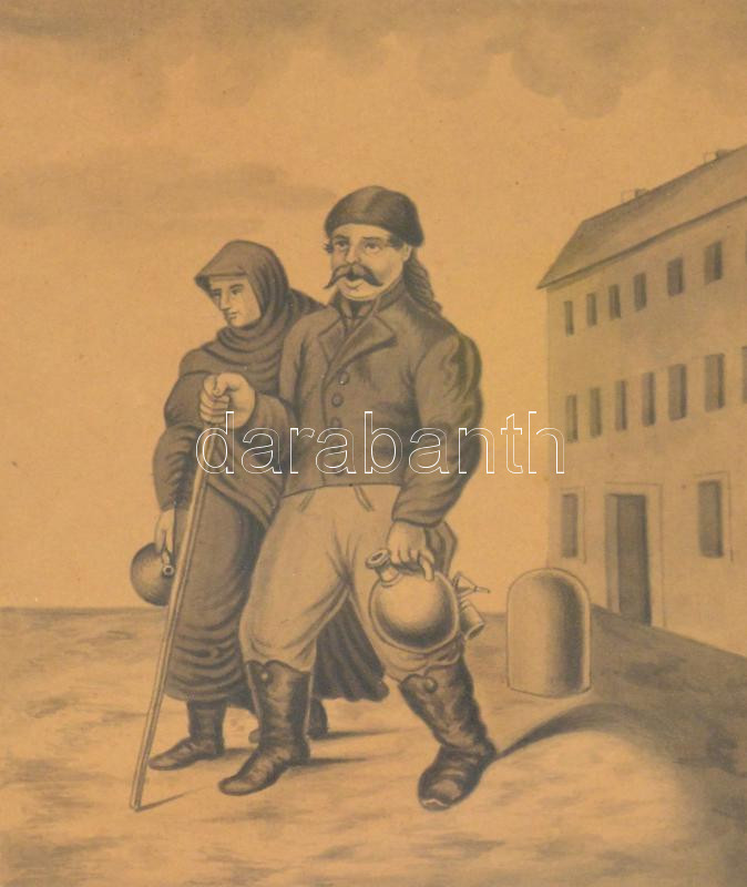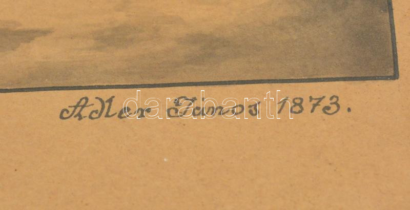 Adler János 1873 jelzéssel: Sétáló pár. Tus, papír. Üvegezett fa képkeretben. 17x13,5 cm