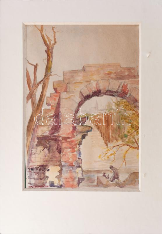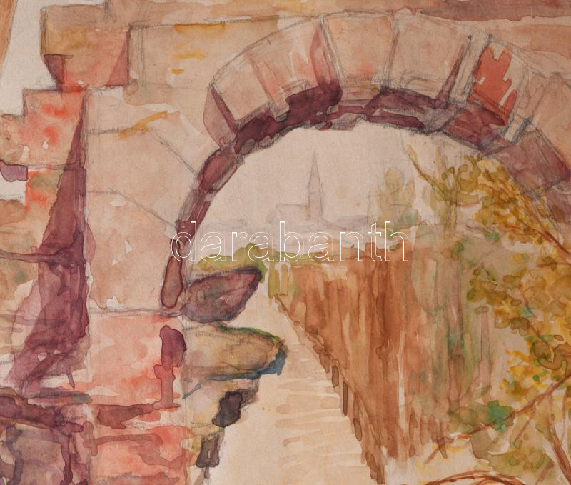Fischl jelzéssel: Schönbrunni részlet, 1928. Akvarell, papír. Paszpartuban. 35x24,5 cm