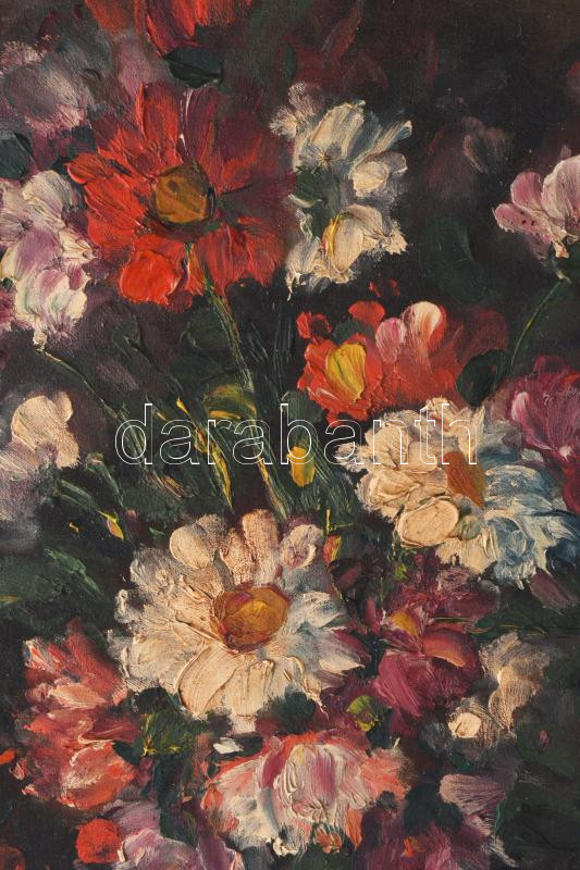 Koszta jelzéssel: Csendélet. Olaj, karton. 40x30 cm. Dekoratív, sérült fakeretben.