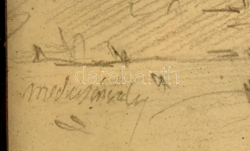 Mednyánszky jelzéssel: Pince. Ceruza, papír. Üvegezett fa keretben. 20x31 cm