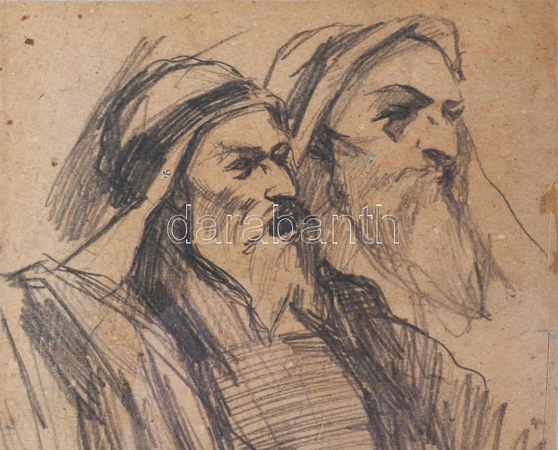 Munkácsy jelzéssel: Alakok. Ceruza, papír. Szélén javított. 25,5x19,5 cm. Üvegezett fakeretben.