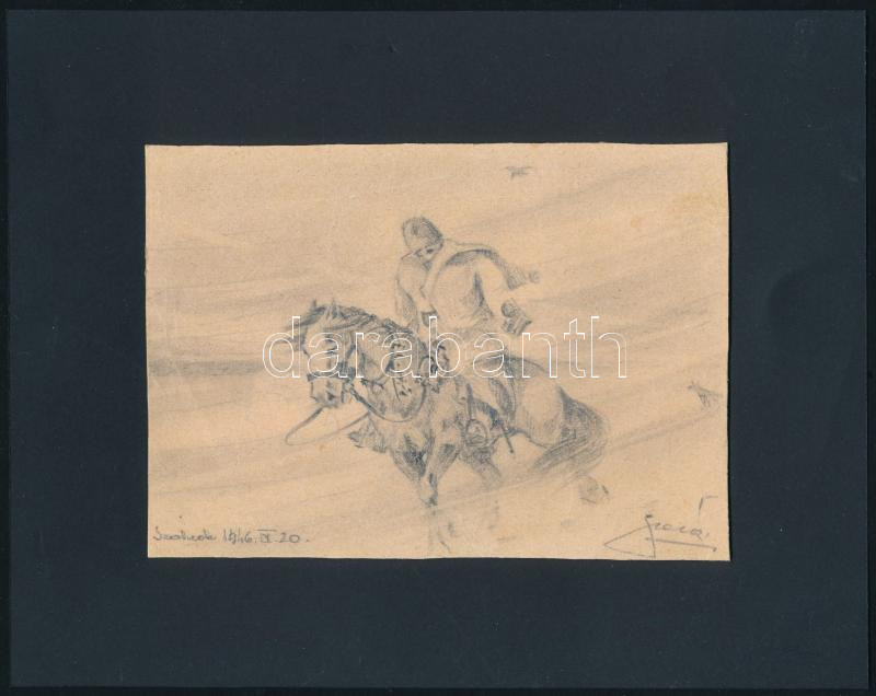 Olvashatatlan jelzéssel: Lovas a viharban, 1946. Ceruza, papír. 10x14,5 cm